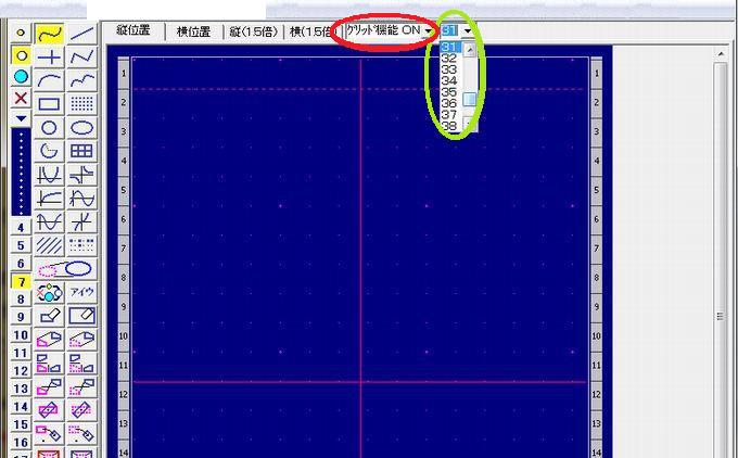 グリッド機能を使うには、メニューバー直下にあるでを選択