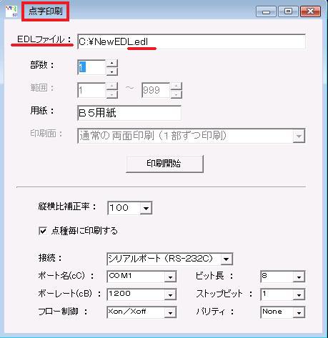 | EDLファイル選択時の、 点字印刷のダイアログボックス。 |