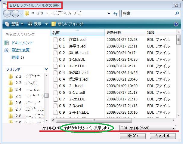 EDLファイルを指定すると、そのフォルダ内の全EDLファイルをサムネイル表示します。