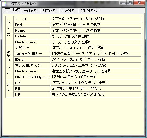関連ページ (点字作成のコツ (2)MINI HINT一覧 b. ファンクションキーでの簡単操作) へ