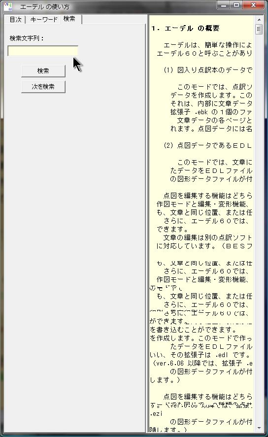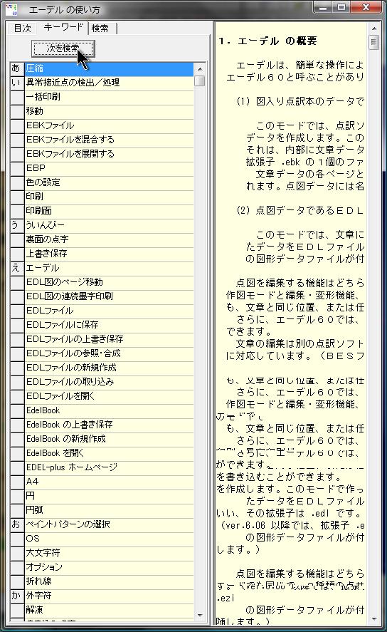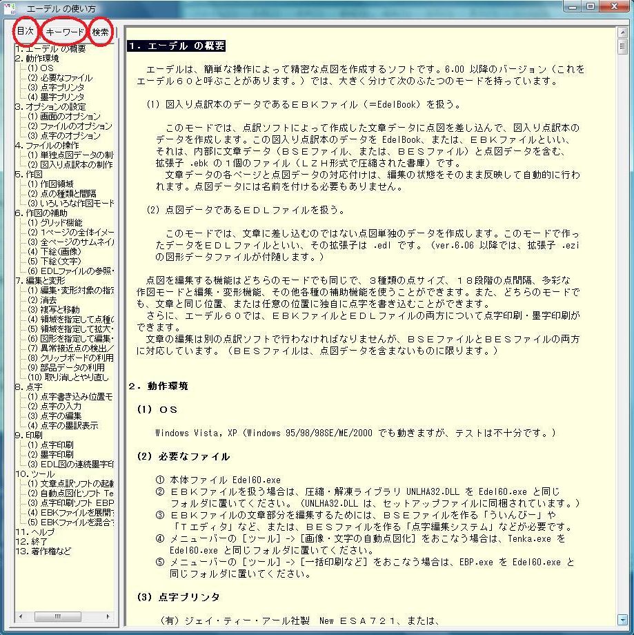 (機能の詳しい説明は【エーデルの使い方】からたどって下さい。