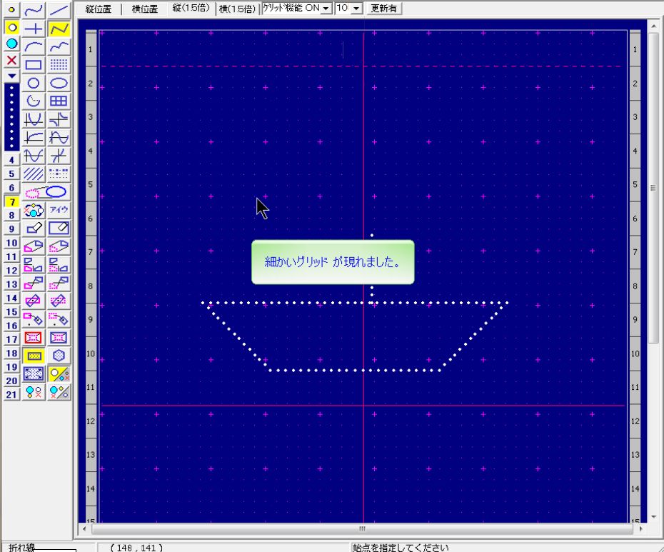 | グリッド機能をONにしてみたところ、かえって自由な描画ができなくなってしまいました。 グリッドの間隔を細かくして解消しました。 |